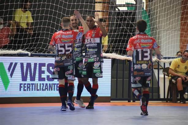 O Cascavel Futsal está em Dourados, no Mato Grosso do Sul, onde disputa a 48ª edição da Taça Brasil de Clubes. A Serpente Tricolor busca o primeiro título da competição nacional e vem fazendo uma grande campanha. O time lidera o Grupo B com seis pontos e tem duas goleadas em dois jogos. No domingo, o Cascavel Futsal goleou o anfitrião Juventude de Dourados por 6 a 2. E na tarde desta segunda-feira (26) repetiu o placar contra a Associação Recreativa Cultural Unidos do Cruzeiro, do Distrito Federal. Nova vitória tranquila por 6 a 2. O Cascavel Futsal foi soberano e construiu o placar já na etapa inicial. Alef, de letra, abriu o marcador. Batista ampliou com um golaço, chute no ângulo, sem chances para o goleiro. Ainda na primeira etapa, Jorginho fez o terceiro. E Batista anotou o quarto gol da Serpente Tricolor.
