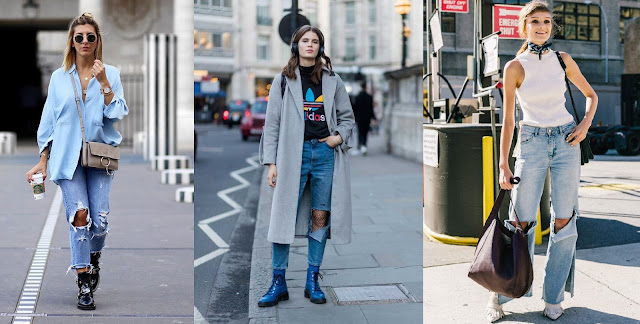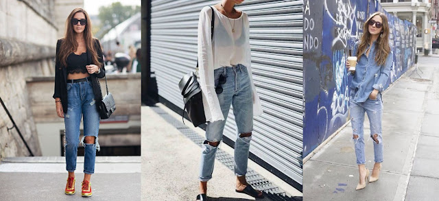 Se alguém me perguntar qual a minha tendência favorita vou responder sem pensar duas vezes: JEANS! Até porque jeans não é tendência, jeans é absoluto né mores. Não sai de moda e é um ótimo investimento, sem falar que é democrático e combina com praticamente tudo. Hoje vamos falar de um peça jeans que eu amo: JEANS DESTROYED - mais minha cara impossível, até porque meu look favorito da vida é JEANS + CAMISETA. Na verdade a gente não vai é falar nada, porque um jeans destroyed fala por si só, trouxe algumas maneiras de usa-lo. Só vamos acrescentar aqui que é uma peça mais descolada e não fica muito bem em ambientes de trabalho mais formais. Minha dica pra vocês é: "se ainda não tem uma calça dessas pra chamar de sua, COMPRE, BJS!"