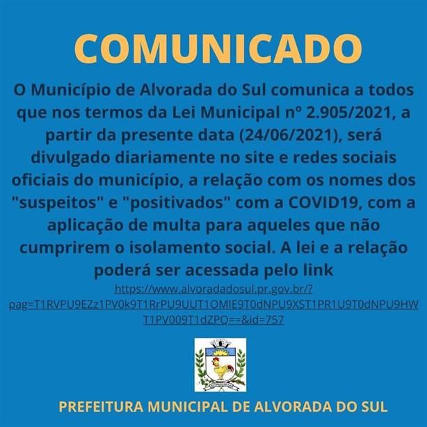 Uma lei aprovada pelo vereadores por unanimidade e sancionada pelo prefeito de Alvorada do Sul, Marcos Antonio Voltarelli, quer identificar os pacientes suspeitos e ou positivados com a Covid-19 com pulseiras coloridas. Além disso, o poder público está autorizado a divulgar os nomes das pessoas com a doença no site e nas mídias sociais.