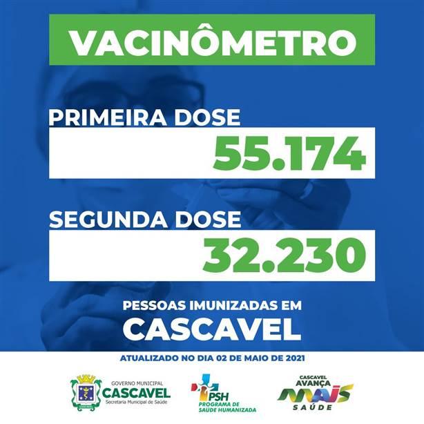 Até a noite deste domingo (02), 55.174 pessoas já receberam a primeira dose. Além disso, 32.230 já estão com as duas doses da vacina.