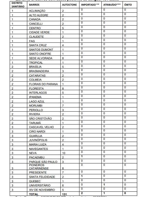 A Secretaria de Saúde de Cascalvel divulgou na tarde desta terça-feira (20), o relatório Epidemiológico de Arbovirose.