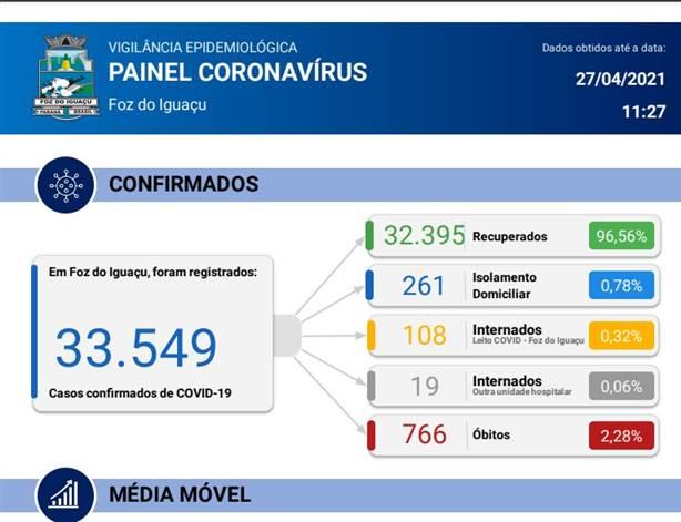 A Vigilância Epidemiológica de Foz do Iguaçu confirmou nesta terça-feira (27) 48 casos de Covid-19. No total, são 33.549 casos da doença no município desde o início da pandemia. Destes, 32.395 pessoas já estão recuperadas.