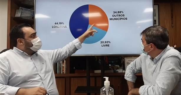 Machado detalhou a taxa de ocupação de leitos UTI exclusivos de coronavírus. Atualmente, quase 80% estão ocupados, sendo 44,19% com moradores de Londrina e 34,88% com pessoas que vieram de outras cidades. “Londrina é referência hoje para 97 municípios diretos, são 2 milhões de habitantes. Se faltarem leitos, vão vir para cá”, disse.