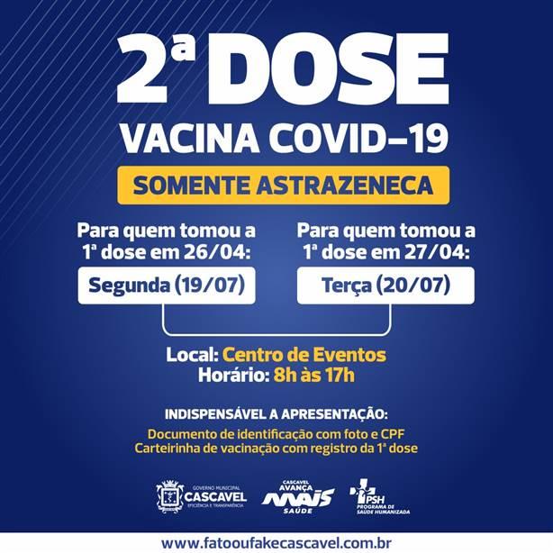 As doses de vacina contra a Covid-19 para população em geral com 33 anos ou mais foram esgotadas nesta segunda-feira (19), em Cascavel.