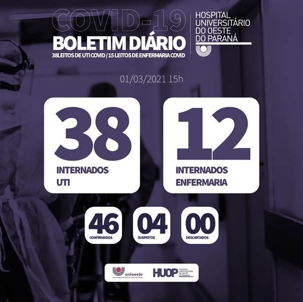 O Hospital Universitário está com ocupação de 100% dos leitos de UTI exclusivas para tratamento da Covid-19. A unidade conta com 38 leitos de unidade intensiva.