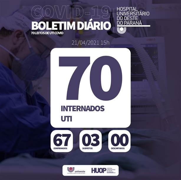 O Hospital Universitário está com 100% dos leitos de UTI ocupados na tarde desta quarta-feira (21).