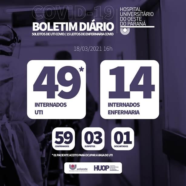 - Paciente sexo masculino, 67 anos, morador de Cascavel, estava internado desde o dia 15/03 e evoluiu à óbito nessa quinta-feira (18).