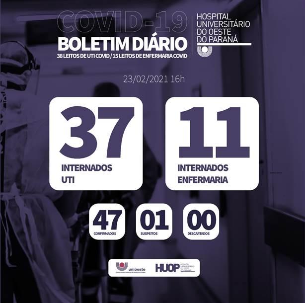 O Hospital Universitário de Cascavel tem apensas um leito de UTI exclusivo para tratamento da Covid-19.