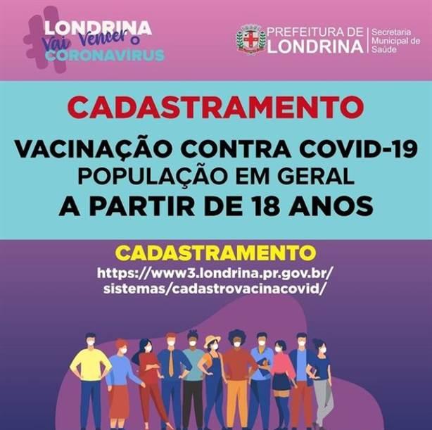 Londrina anunciou na manhã deste sábado (7) a abertura do cadastro da vacinação contra Covid para toda a população geral com 18 anos ou mais.