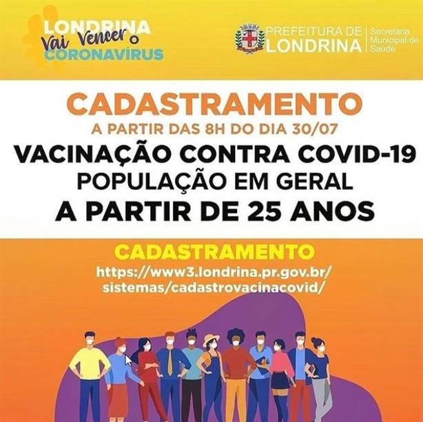 As pessoas que estiverem com dificuldades com o cadastramento e agendamento ou não possuem conectividade, devem procurar ajuda nas Unidades Básicas de Saúde (UBSs). Em Londrina, a vacinação contra Covid-19 ocorre em cinco locais: Centro de Imunização da Zona Norte, UBS do Jardim do Sol, UBS Alvorada, UBS do Ouro Branco e UBS Eldorado. Os endereços estão disponíveis aqui.