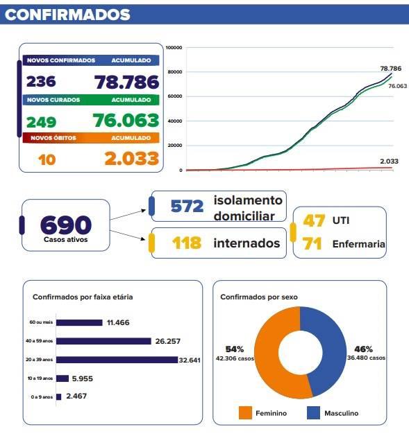 O número dos considerados curados da doença chegou a 76.063. Atualmente, são 95 pessoas com sintomas da doença que aguardam resultados de exames.