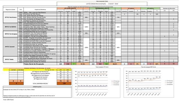 A taxa de ocupação de leitos de UTI na Macrorregião Oeste apresentou alta nas últimas 24h. A informação é do boletim do Consamu, Consórcio Intermunicipal Samu Oeste, divulgado nesta sexta-feira (21).
