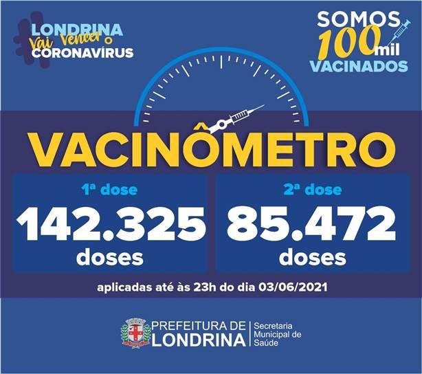 Mais de 3 mil pessoas foram vacinadas contra Covid-19 em 24 horas em Londrina. Segundo os dados do vacinômetro, até às 23h desta quinta-feira (03), fora aplicadas 2933 doses de primeira imunização e outras 125 aplicações de segunda dose.
