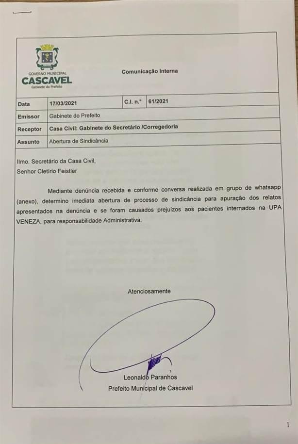 O portal Tarobá News entrou em contato com a Prefeitura que confirmou a informação, mas afirmou que não houve consequências aos pacientes. Foi aberta uma sindicância para investigar o caso e apurar a responsabilidade.