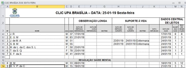 Essa é uma prestação de contas realizada pela Administração Municipal através da Secretaria de Saúde de Cascavel. As planilhas contém informações sobre tempo de espera dos pacientes que aguardam leitos em hospitais, além de idade, sexo e destino em caso de transferência ou de alta.