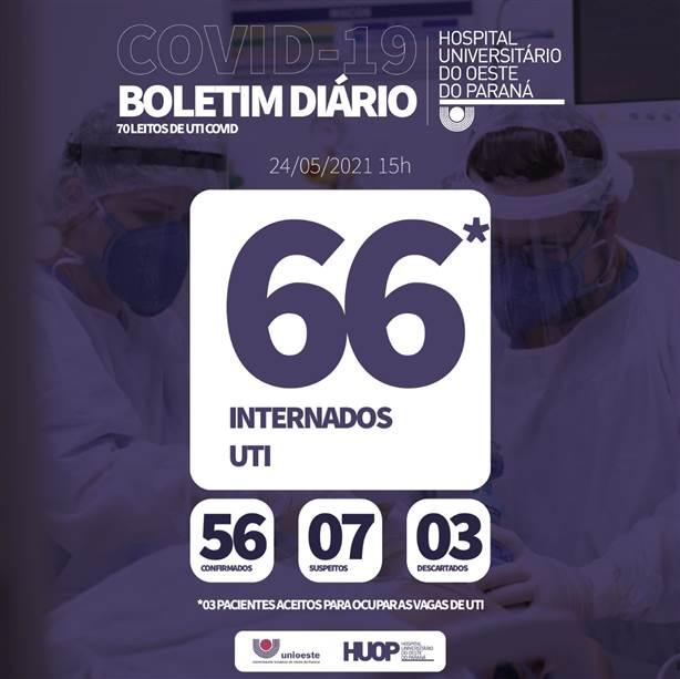 O Hospital Universitário do Oeste do Paraná (Huop) comunicou a morte de quatro pacientes com diagnóstico para Sars-CoV-2.