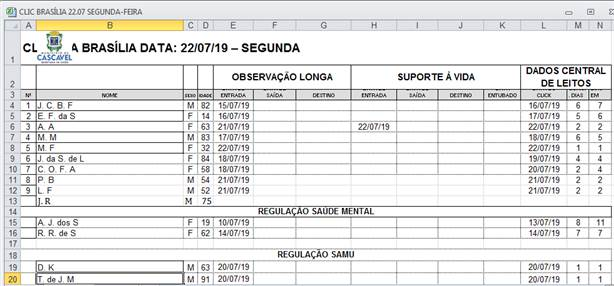 Essa é uma prestação de contas realizada pela Administração Municipal através da Secretaria de Saúde de Cascavel. As planilhas contém informações sobre tempo de espera dos pacientes que aguardam leitos em hospitais, além de idade, sexo e destino em caso de transferência ou de alta.