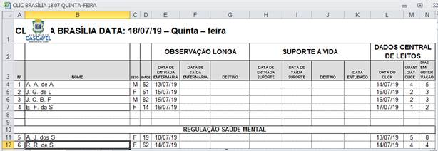 Essa é uma prestação de contas realizada pela Administração Municipal através da Secretaria de Saúde de Cascavel. As planilhas contém informações sobre tempo de espera dos pacientes que aguardam leitos em hospitais, além de idade, sexo e destino em caso de transferência ou de alta.