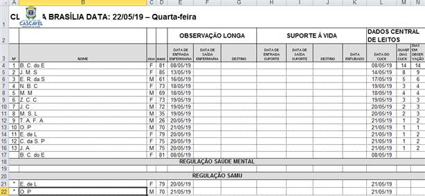 Essa é uma prestação de contas realizada pela Administração Municipal através da Secretaria de Saúde de Cascavel. As planilhas contém informações sobre tempo de espera dos pacientes que aguardam leitos em hospitais, além de idade, sexo e destino em caso de transferência ou de alta.