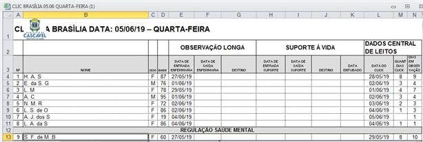 Essa é uma prestação de contas realizada pela Administração Municipal através da Secretaria de Saúde de Cascavel. As planilhas contém informações sobre tempo de espera dos pacientes que aguardam leitos em hospitais, além de idade, sexo e destino em caso de transferência ou de alta.