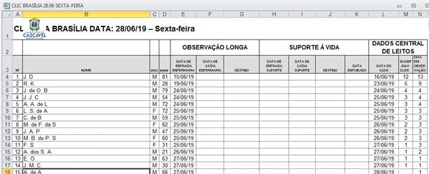 Essa é uma prestação de contas realizada pela Administração Municipal através da Secretaria de Saúde de Cascavel. As planilhas contém informações sobre tempo de espera dos pacientes que aguardam leitos em hospitais, além de idade, sexo e destino em caso de transferência ou de alta.