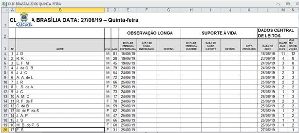 Essa é uma prestação de contas realizada pela Administração Municipal através da Secretaria de Saúde de Cascavel. As planilhas contém informações sobre tempo de espera dos pacientes que aguardam leitos em hospitais, além de idade, sexo e destino em caso de transferência ou de alta.