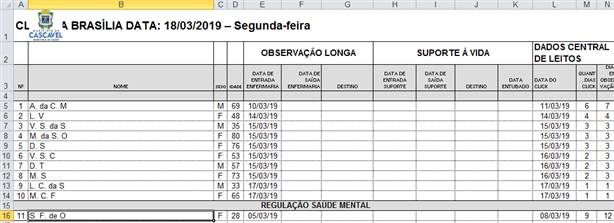 Confira o relatório de pacientes aguardando leitos nas Upas de Cascavel. Essa é uma prestação de contas realizada pela Administração Municipal através da Secretaria de Saúde de Cascavel. As planilhas contém informações sobre tempo de espera dos pacientes que aguardam leitos em hospitais, além de idade, sexo e destino em caso de transferência ou de alta.