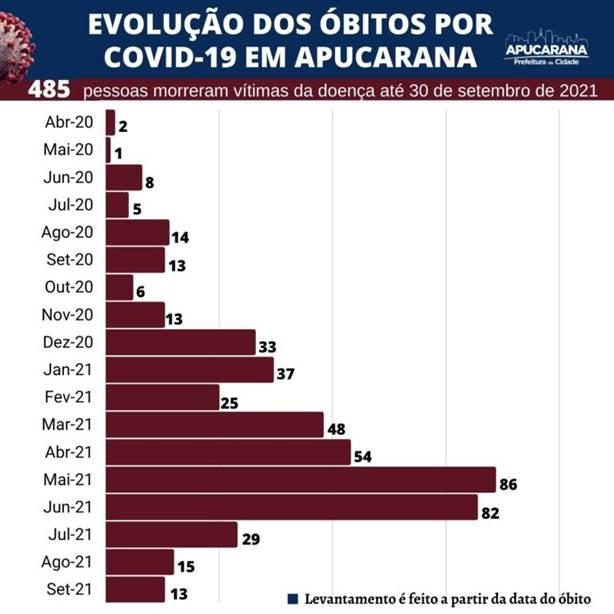 Por outro lado, o município voltou a registrar queda nos óbitos por Covid-19. Foram contabilizadas 13 mortes em setembro contra 15 em agosto, uma redução de 13,3%.