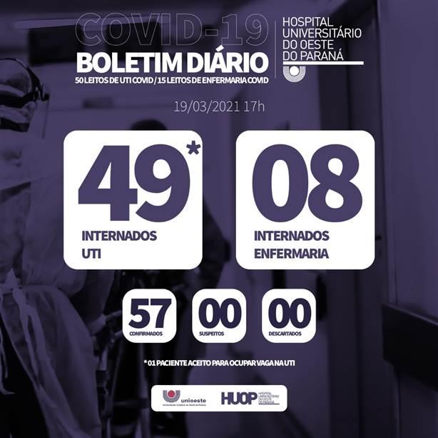 O Hospital Universitário do Oeste do Paraná (Huop) comunicou a morte de três pacientes com exame positivo para Sars-CoV-2.