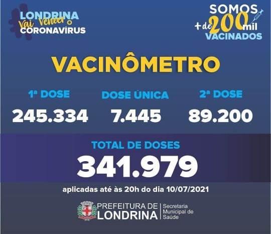 Até o momento, 341.979 doses foram aplicadas em moradores de Londrina.