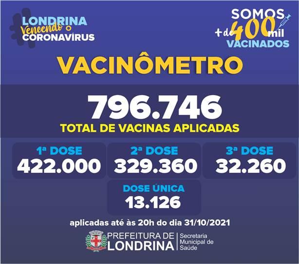 A Prefeitura, por meio da Secretaria Municipal de Saúde, aplicou no domingo (31), 2.317 doses da vacina contra a Covid-19. Deste total, 335 tomaram a primeira dose, 1.059 a segunda dose e 923 a terceira dose de reforço. A cidade já tem 342.486 pessoas completamente imunizadas contra a Covid-19 e 422 mil que já tomaram a primeira dose. A Prefeitura já aplicou 796.746 doses de vacinas contra Covid.