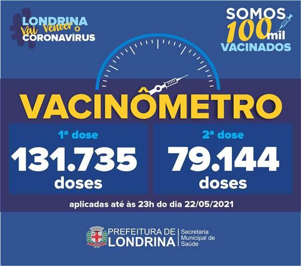Mais de 131 mil pessoas receberam 1ª dose contra a Covid-19 em Londrina. Os dados são do Vacinômetro, publicado neste sábado (22) pela Prefeitura de Londrina.