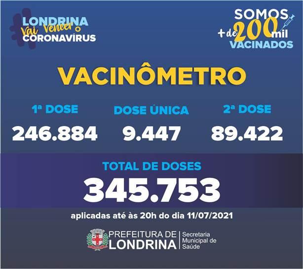 Mais de 9 mil pessoas receberam a vacina contra covid-19 em dose única em Londrina. Ao todo 2.002 tomaram a vacina da Janssen, braço farmacêutico da Johnson & Johnson, nas últimas 24 horas. A atualização do vacinômetro foi divulgada nesta segunda (12).