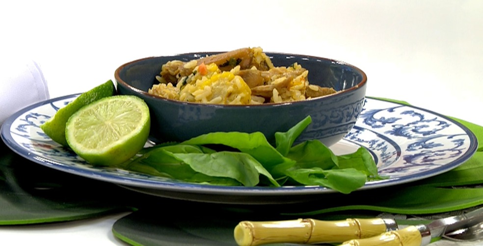 Guilherme Francisco, vencedor do programa gastronômico da Tarobá, Sou Chef 2023, ensinou o passo a passo para preparar um delicioso frango com arroz e especiarias. Frango, cebola, cenoura, milho e muito mais. Saiba como transformar o sabor desses alimentos com a deglaçagem, técnica que aproveita os resíduos grudados no fundo da panela e garante um sabor único a qualquer preparo.