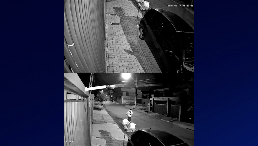Nos vídeos é possível ver os homens rondandoa região. Momentos depois, um deles começa a mexer no lixo de uma residência. Pouco tempo depois, outro homem aparece segurando uma sacola onde poderiam estar produtos furtados.