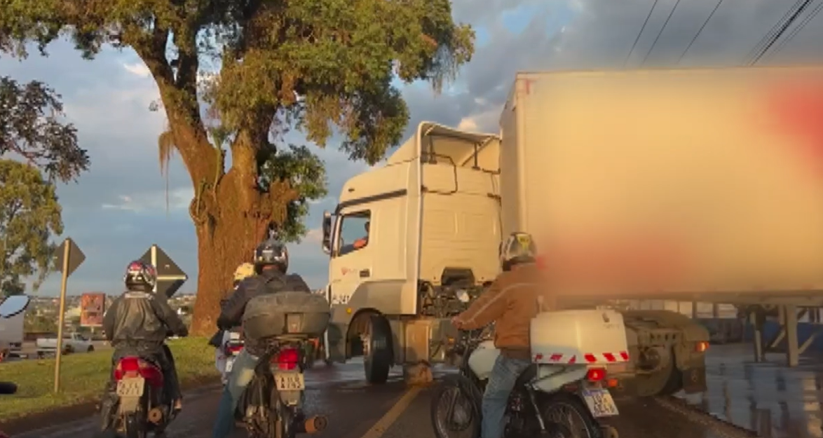O fluxo de veículos nas marginais no perímetro urbano de Cascavel é intenso especialmente em horário de pico. E os motoristas que transitam por esses trechos tem enfrentado problemas por conta de caminhões que acessam empresas. Nossa equipe registrou o momento em que o veículo pesado ocupou as duas faixas da pista bloqueando totalmente o trânsito. As imagens mostram ainda a dificuldade dos motociclistas que ficaram parados por um bom tempo antes de conseguir seguir na via.