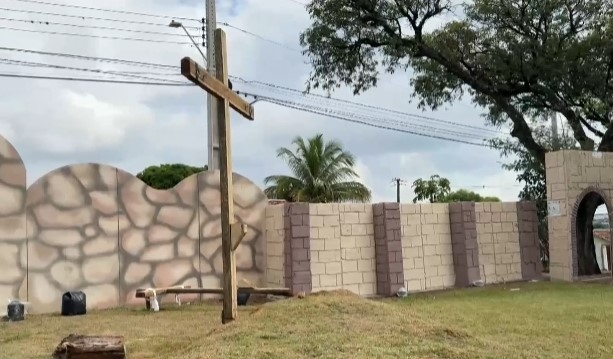 O espetáculo da Paixão de Cristo começa a ser preparado no Conjunto Lindóia, zona leste de Londrina, nesta quinta-feira (17). O cenário está praticamente pronto. O local foi preparado especialmente para receber o público na noite de Sexta-feira Santa (18).