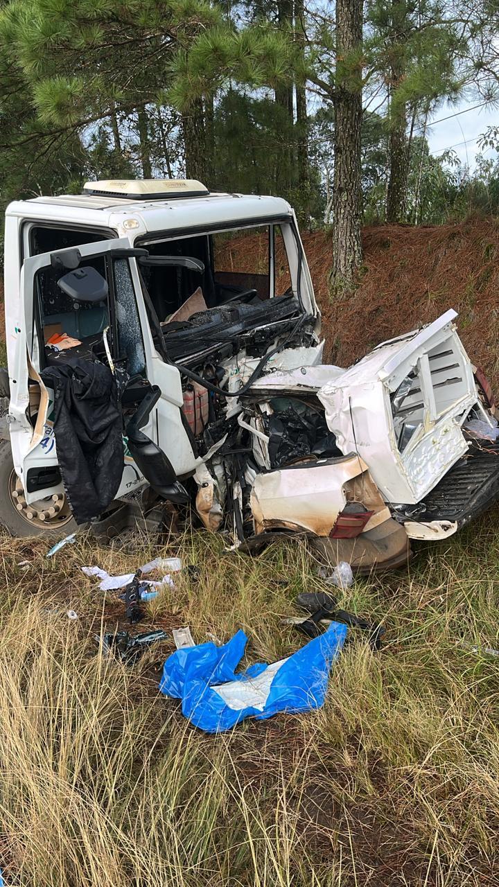 De acordo com a Polícia Rodoviária Estadual, a colisão aconteceu no km 466+500m da rodovia. O caminhão Iveco Tector, com placas de Umuarama (PR), seguia sentido Pinhão-Bituruna quando colidiu de frente com o VW Saveiro, com placas de Arroio Trinta (SC), que trafegava na direção contrária.