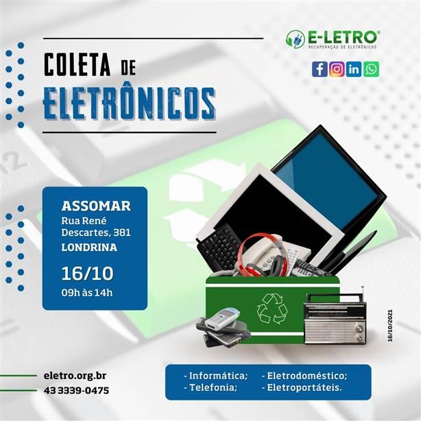 Neste sábado (16), até às 14h, a Assomar será o ponto de entrega para mais uma ação de coleta lixo eletrônico para reciclagem em Londrina.