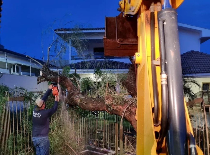 Por conta do temporal, árvore cai sobre casa no Jardim Alto da Boa Vista