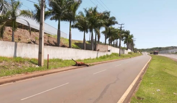 Após quatro dias, cavalo morto é retirado das margens da PR-445 em Londrina